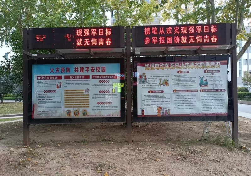 为扩大消防安全宣传覆盖面,学校在校园橱窗等公示栏张贴消防安全知识,在警务室、东苑食堂门前设立宣传摊位,开展定点宣传活动。活动现场,志愿者通过发放消防宣传手册、展示消防器材实物等形式,向过往师生普及消防安全知识。针对冬季火灾高发特点,重点讲解了宿舍用电安全、厨房用火安全、电动车充电安全等常见安全隐患及防范措施,并耐心解答师生提出的消防安全相关疑问。生动直观的宣传形式吸引了众多师生驻足参与,进一步增强了师生的消防安全防范意识和自我保护能力,让安全理念深入人心。
